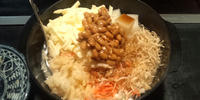 さっきから視界に入ってしょうがない納豆もんじゃへ、議論の末に決まりましたヽ(*´・ω・`*)ノ