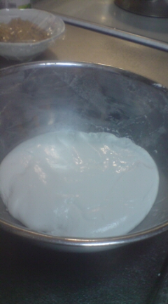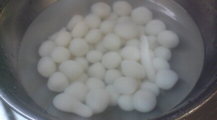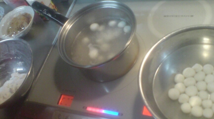 (小毬が)こねて、(小毬が)丸めて、浮いてきたのを(KONAが)すくう。