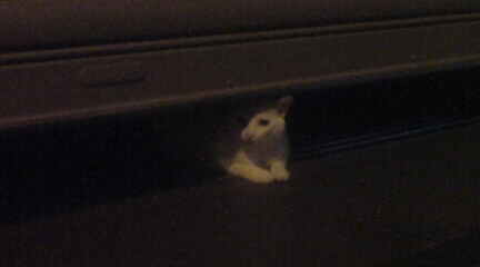 そっと開いたシャッターの下、顔を覗かせてゆく人を見ている仔…(*・艸・)vv